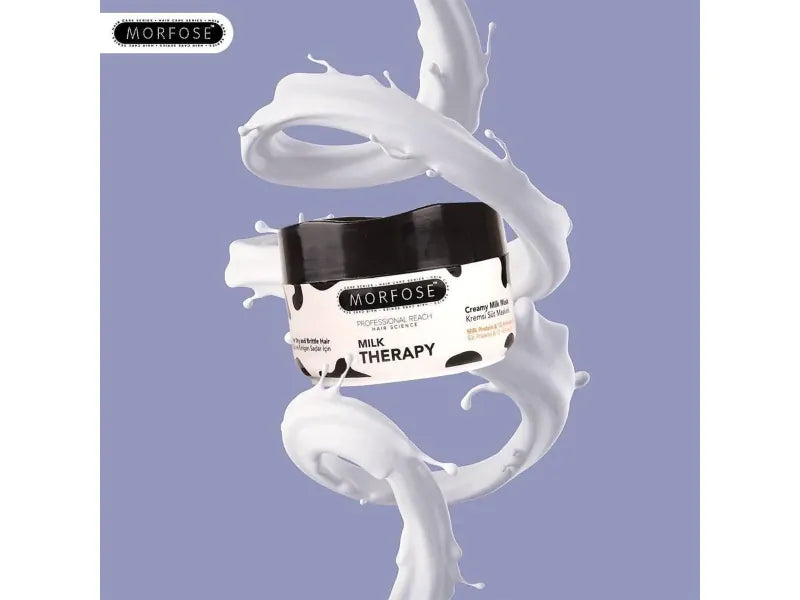 Morfose Milk Therapy Creamy Milk Mask är formulerad med 12 essentiella aminosyror och mjölkprotein för att ge intensiv vård, återställa hårets tidigare vitalitet och ge det ett slätt, silkeslent utseende. Aminosyrorna stödjer bildandet av hårets proteinstruktur och hjälper till att reparera skadade ytor, medan mjölkproteinet reglerar fuktbalansen i torrt och sprött hår. Denna mask förbättrar hårets hälsosamma och livliga utseende och lämnar det mjukt och silkeslent. Passar alla hårtyper, men är särskilt fördelaktig för torrt och skadat hår och ger djup näring och revitalisering.