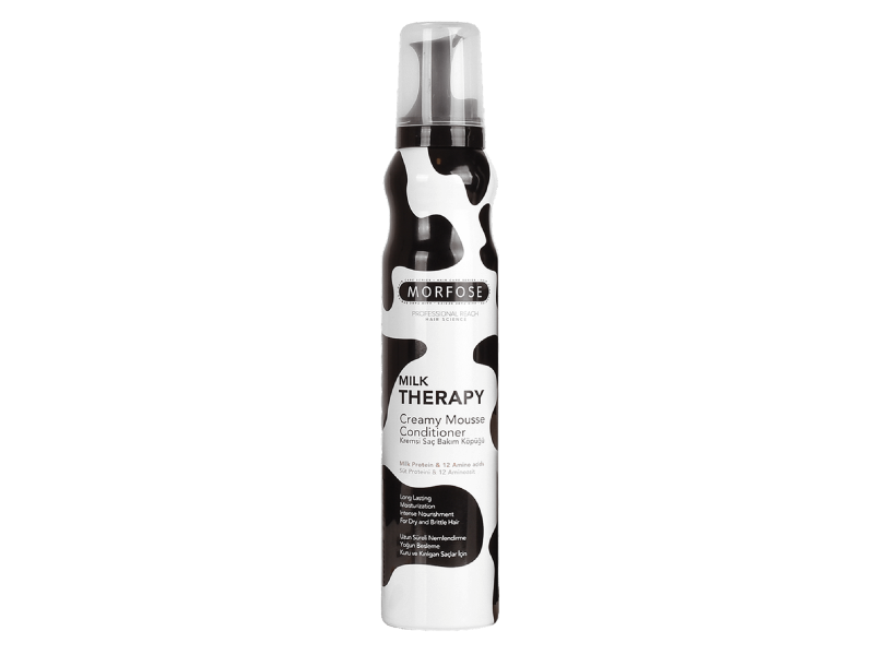 Morfose Milk Therapy Creamy Foam Conditioner ger ditt hår intensiv återfuktning och näring tack vare kraften i mjölkprotein och aminosyror. Den luftiga skumformulan stärker hårets elasticitet och motståndskraft, vilket gör det livfullt och starkt. Den reder ut och slätar ut håret med lätthet, vilket gör det enklare att hantera och styla. Denna balsam är idealisk för daglig användning och passar alla hårtyper, med en perfekt balans mellan fukt och vård. Den lämnar håret mjukt, glänsande och välvårdat. Berikad med en subtil och behaglig doft ger den en fräsch, lätt söt och mjölkig arom som håller sig kvar hela dagen.
